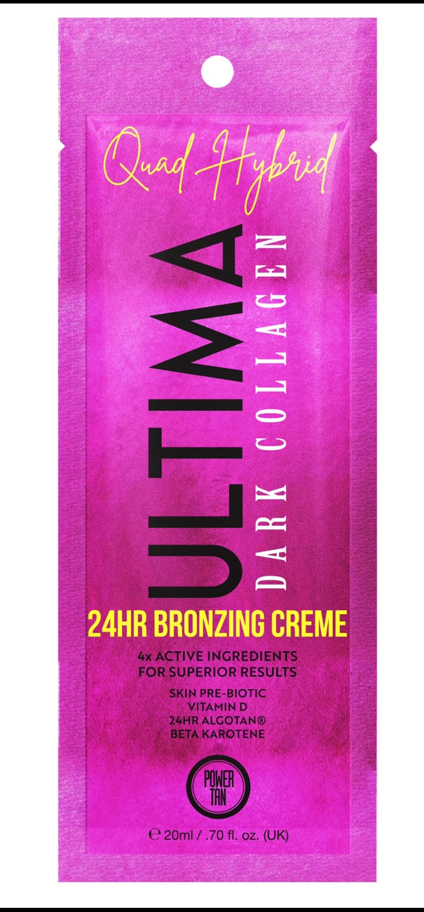 This new Quad Hybrid 24HR Collagen Bronzer is one of our most powerful and advanced tanning formulations to date. Super enriched collagen improves skin elasticity and reduces visible wrinkles to make your skin look and feel younger! Not only that! Its Quad 4-Active tanning complex delivers spectacularly dark, long lasting, tanning results and helps to repair and rejuvenate your skins natural micro-biome.