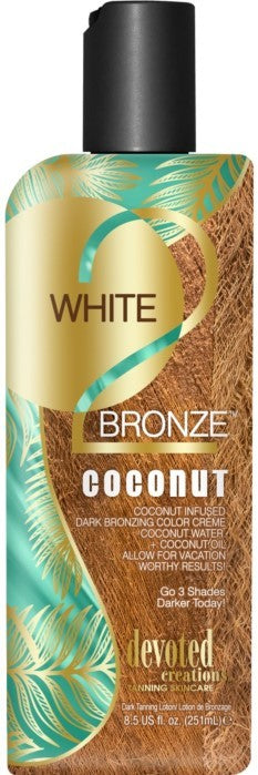 If you are craving a taste of the tropics then your skin needs White 2 Bronze™ Coconut, the vacation in a bottle! This intoxicating bronzing crème will drench the skin just from the beach dark color while added Coconut water, Coconut Oils & Extracts smooth, soften, hydrate and quench even the driest skin. If what you desire is darkness, then no vacation needed… White 2 Bronze™ Coconut will be your passport to paradise!