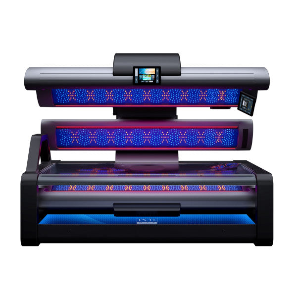 For the first time ever, this ground-breaking tanning bed incorporates LEDs across the full spectrum - UVA, UVB, and Red Light - offering an entirely new tanning experience.